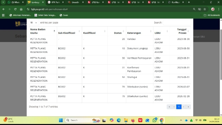 ” Status tanggal pembekuan (sanksi) SBU BG002 CV Petta Puang Regeneration dapat dibuktikan melalui website lpjk : https:///lpjk.pu.go.id/pencarian-bu-index,” jelasnya.