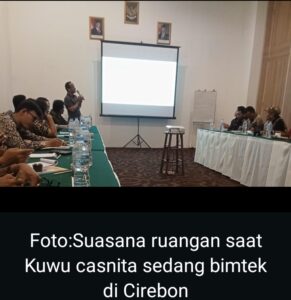 “Lagi bintek ning Cirebon,” tulisnya sambil mengirimkan foto kegiatan bimbingan teknis.